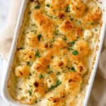 - Assemble Gratin: Place the cooked cauliflower into the prepared casserole dish and pour the cheese sauce evenly over the top.