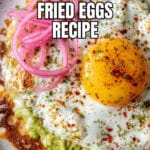 Crispy Feta Fried Eggs are a delightful breakfast or brunch dish featuring a perfectly cooked egg nestled on a warm tortilla with smashed avocado, topped with crispy, golden-brown feta cheese and garnished with pickled onions and chili oil for a burst of flavor.