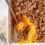 - Assemble Casserole: Spoon the sweet potato mixture into the prepared casserole dish, smoothing the top. Evenly sprinkle the pecan and oat topping over the sweet potato layer.