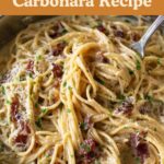 I love topping this carbonara with extra Parmigiano Reggiano for sharp cheesy richness and a handful of finely chopped fresh green parsley—it adds a lovely color pop and fresh herb aroma that lightens the richness.