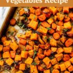 You’re looking for the vegetables to be tender when pierced with a fork and nicely caramelized on the edges. The cooking time is typically around 50 minutes at 425°F, but ovens vary, so keep an eye on them starting at 45 minutes.