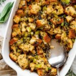A flavorful vegan sourdough stuffing recipe perfect for holiday meals or cozy dinners. This recipe combines toasted sourdough bread cubes with sautéed vegetables and fresh herbs, baked to golden perfection with rich vegetable broth.